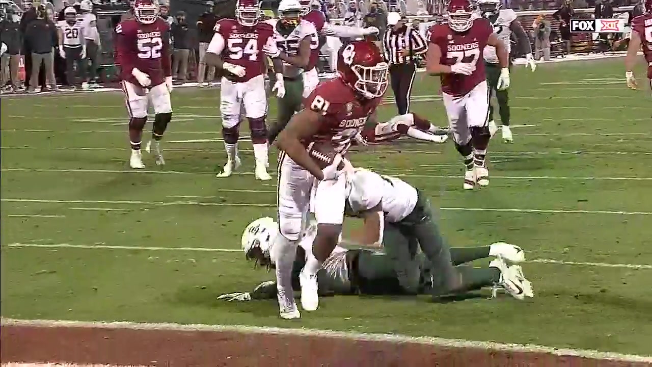Spencer Rattler's pass was nearly intercepted by a Baylor Bears defender, but luck was on the Oklahoma Sooners' side as Rattler pass found Brayden WIllis for a nine-yard touchdown. Oklahoma leads Baylor, 27-7.